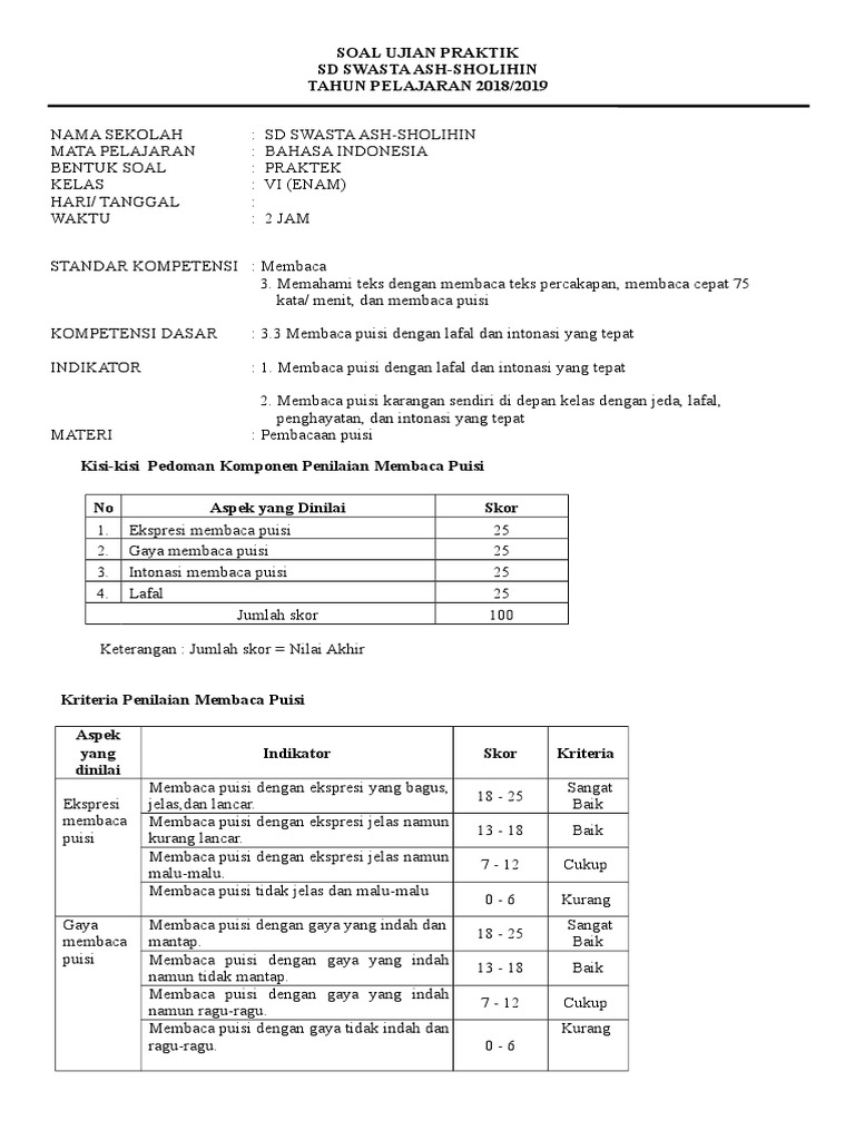 Contoh Soal Ujian Praktek Bahasa Indonesia Sd Kelas 6 Dapatkan Contoh from cdn.slidesharecdn.com Maybe you would like to learn more about one of these? Materi praktek bahasa indonesia kelas 6. We did not find results for: Check spelling or type a new query.